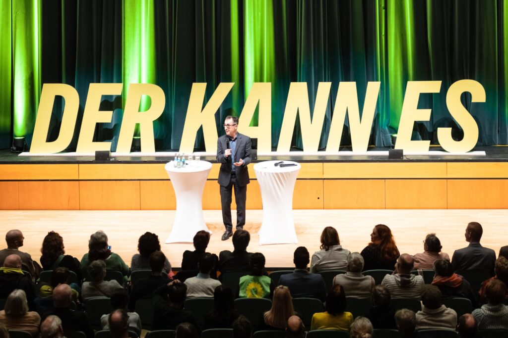 „Ich war gespannt, wer in Luchas Fußstapfen treten will“, sagte eine Besucherin, „jetzt habe ich sie selbst erlebt und glaube, dass sie es schafft.“ Das Anna es kann – davon konnte sie an diesem Abend viele Interessierte überzeugen, weit über die grüne Bubble hinaus. Dass Cem es kann – hinter ihm konnte man auf bühnenfüllenden Holzbuchstaben lesen: „Der kann es“ – davon überzeugte auch er auf sympathische Weise. Kleinliches Rumhacken auf dem politischen Gegner? Fehlanzeige. Die Schuld für alle Probleme stets bei anderen suchen? Nicht mit Cem. Er brachte an diesem Abend in Weingarten einen ganz neuen, lange nicht gehörten Ton in die politische Auseinandersetzung. Ehrlich. Selbstkritisch. Konstruktiv. „Nicht das Parteibuch soll entscheiden, sondern wer die besten Ideen für Baden-Württemberg hat“. Keine großen und schon gar keine leeren Versprechungen vor der Wahl.